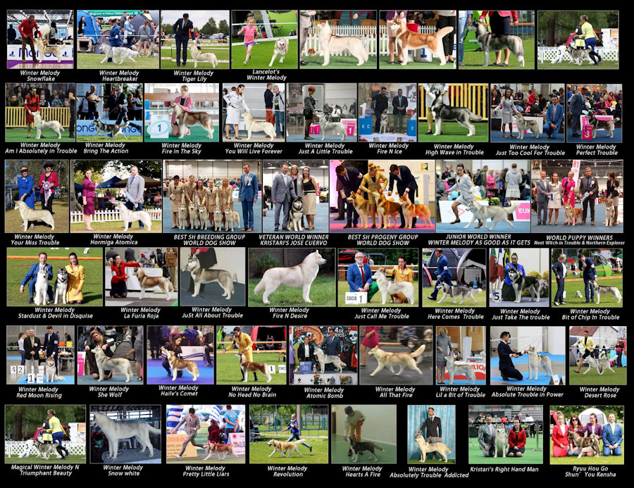 we own 9 Siberians - show/breeding dogs living with us: Kristari's Jose Cuervo, Winter Melody Trouble Maker, Winter Melody Break The Wave, Winter Melody Here Comes Trouble, Winter Melody You are In Trouble, Winter Melody Bewitched N Bewildered, Lancelot's Winter Melody, Winter Melody As Good As It Gets, Winter Melody Just Call Me Trouble.